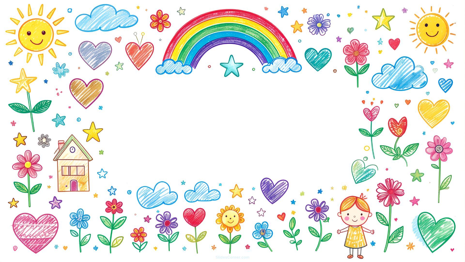 Unlike overly busy designs, this background keeps the focus where it matters. The drawings frame the content naturally, while the rainbow adds a strong emotional hook associated with positivity, learning, and growth. Because it’s delivered in HD and without watermarks, it feels professional while still playful.