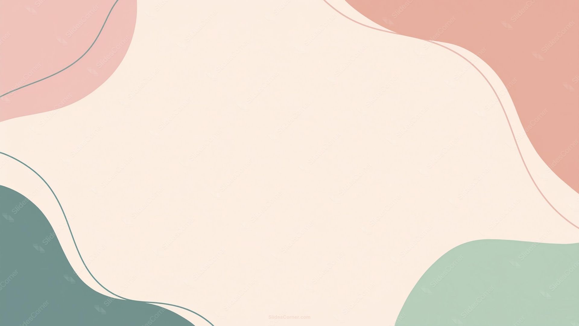 Designed by SlidesCorner.com, this aesthetic background features a soft light yellow base combined with flat, wavy shapes placed organically in each corner. The color palette includes light green, dark green, soft pink, and salmon pink, forming a subtle frame that naturally draws attention toward the center of the slide. Best of all, the middle area remains clean and empty, giving you plenty of space to add titles, text blocks, images, charts, or icons without visual noise.