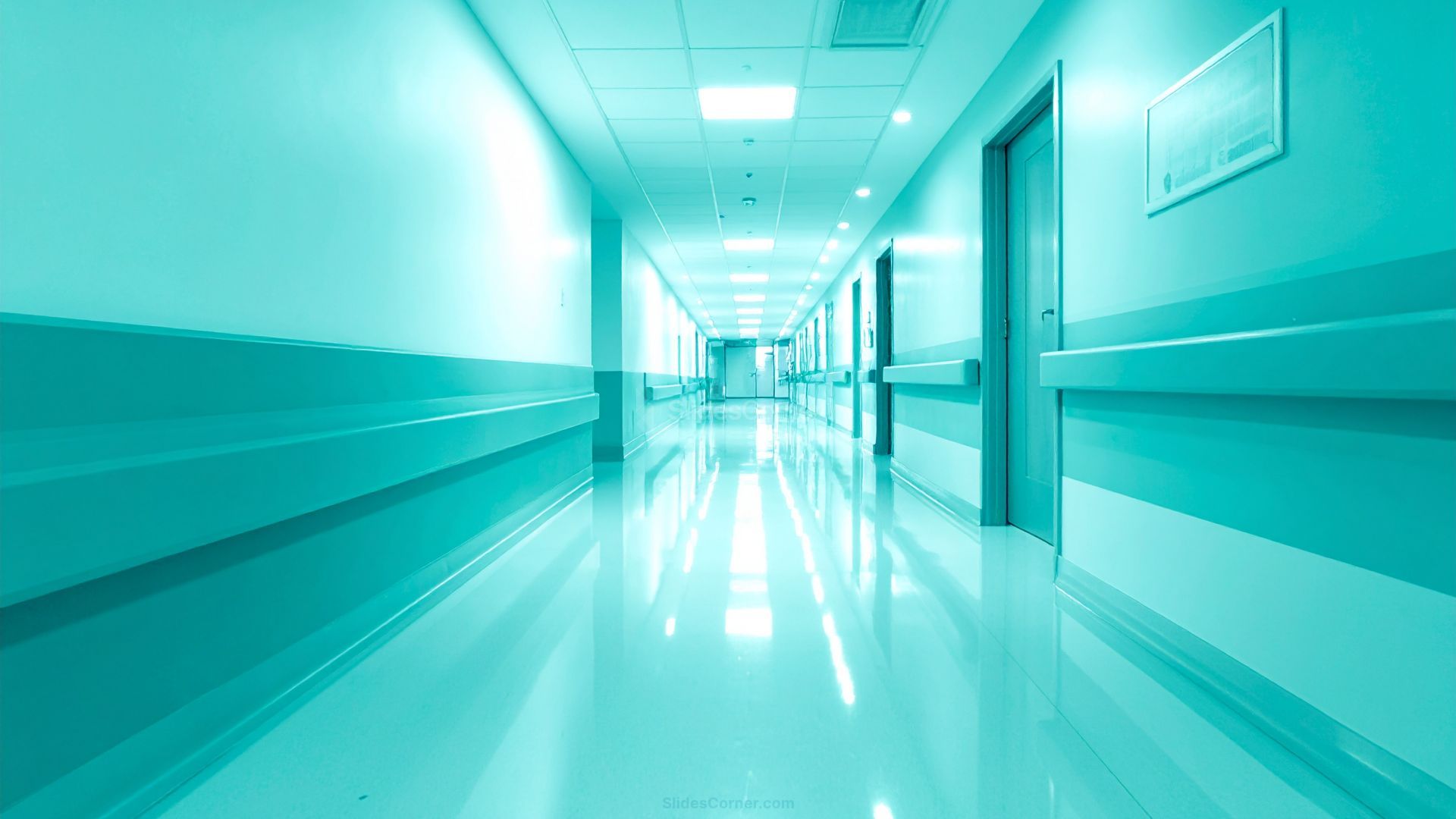 Download a free Aesthetic Medical Background PPT featuring a clean hospital hallway scene for health presentations.