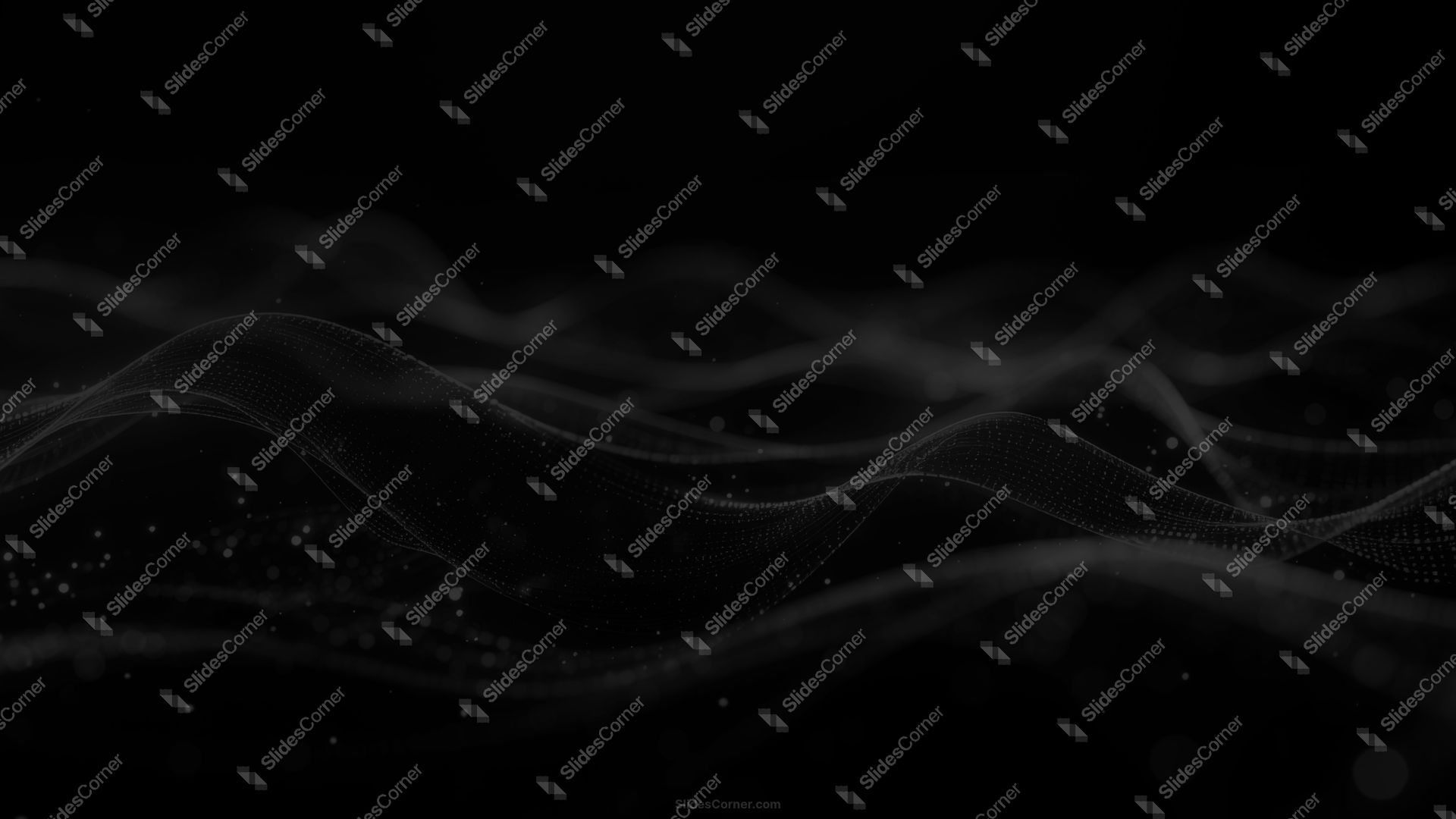 Download a sleek black HD background with soft waves and particles, perfect for PPT slides, tech presentations, and wallpapers.