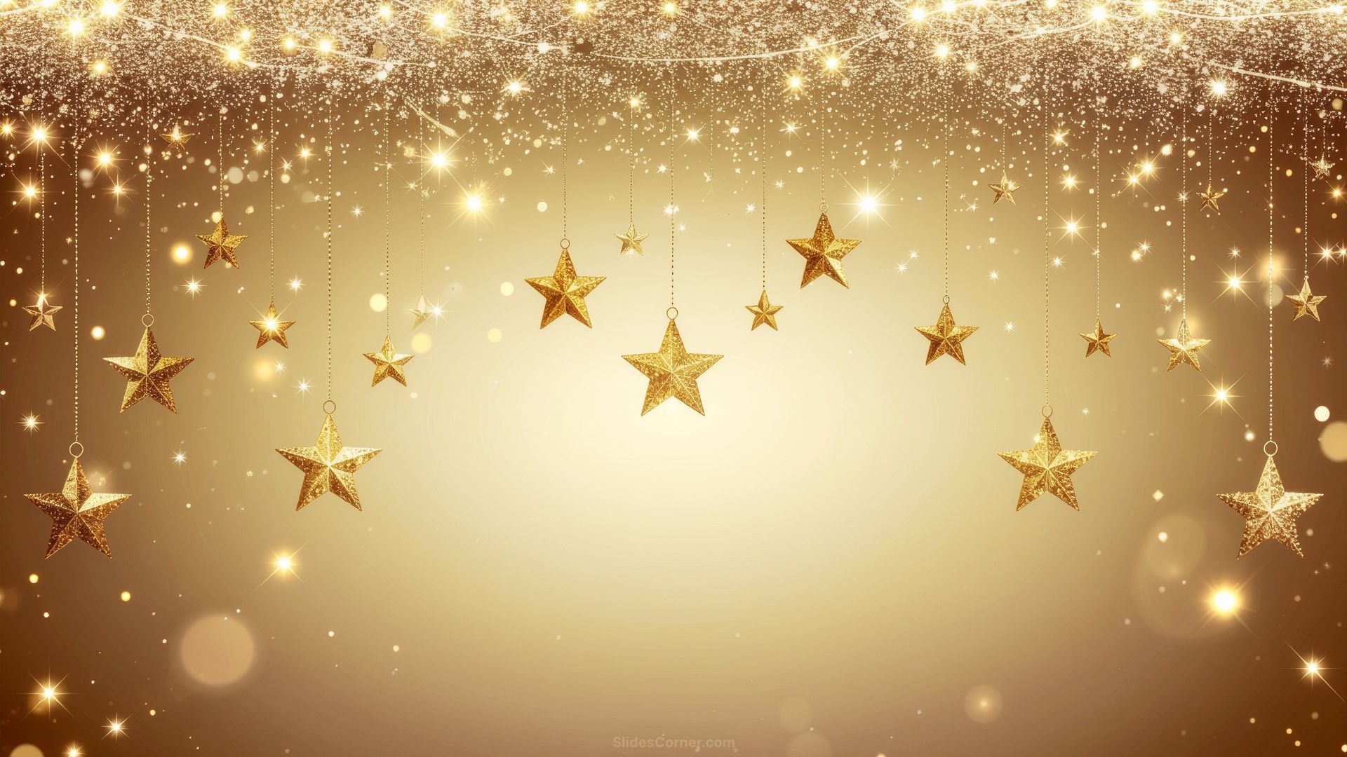 Its golden color scheme symbolizes celebration, success, and warmth—key emotions associated with holidays and year-end moments. The hanging stars at the top subtly frame your content while guiding the viewer’s eye downward, enhancing clarity and visual flow.