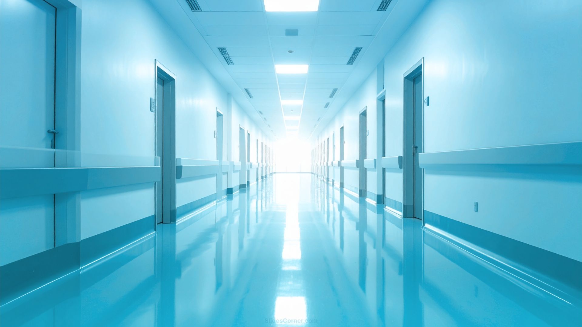Features of Medical PPT Background Blue Hospital Hallway Rooms