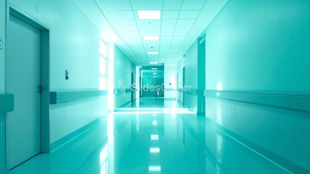 If you’ve been searching for the perfect Medical PPT Background, look no further. This image captures a clean, bright Hallway in a modern Hospital, bathed in a soothing light Green and subtle Cyan tint that communicates calm. It’s not just a picture; it’s an Aesthetic choice that ensures your audience focuses entirely on your content, not your distracting visuals. Whether you’re a Doctor, a scientist, or a student preparing a Slideshow, this simple yet powerful backdrop is a must-have for any topic related to Health, Medicine, or advanced Clinical research.