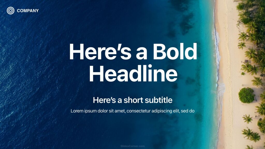 If you’re looking for a clean, elegant, and refreshing blue presentation background, this ocean view from above offers exactly that balance. Download it for free from SlidesCorner and give your next presentation a calm and inspiring visual foundation.